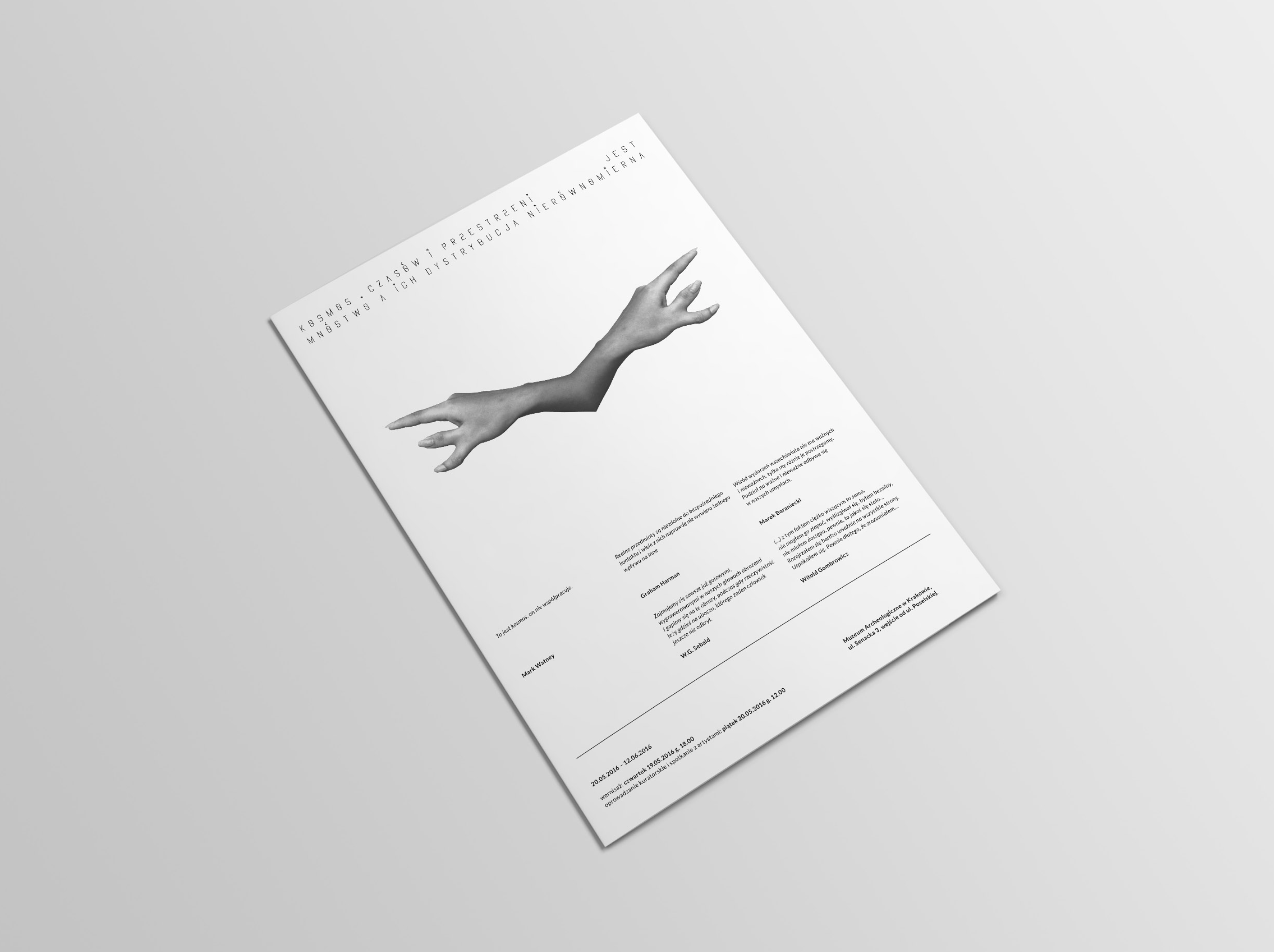 Visual identification of a series of artistic events entitled: Cosmos. There are many times and spaces and their distribution is uneven. Events were organized as part of the Science Festival in Cracow 2016.